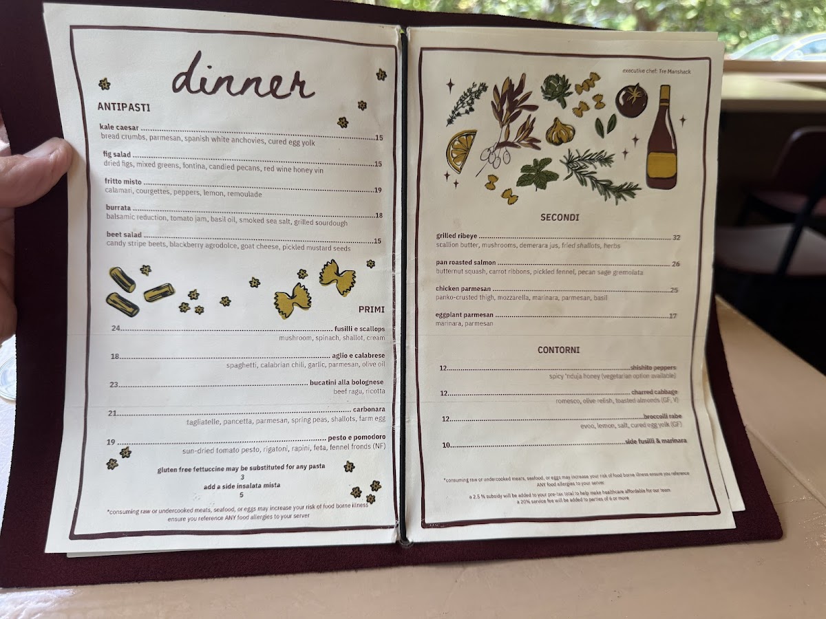 farm fresh vegetables, pasta fusilli. Choice of pomodoro or olive oil/garlic base